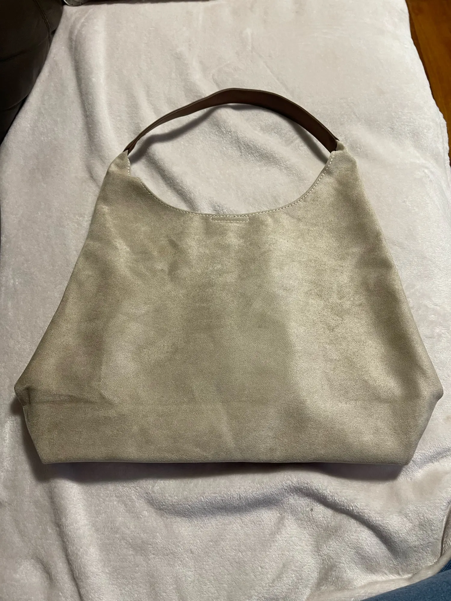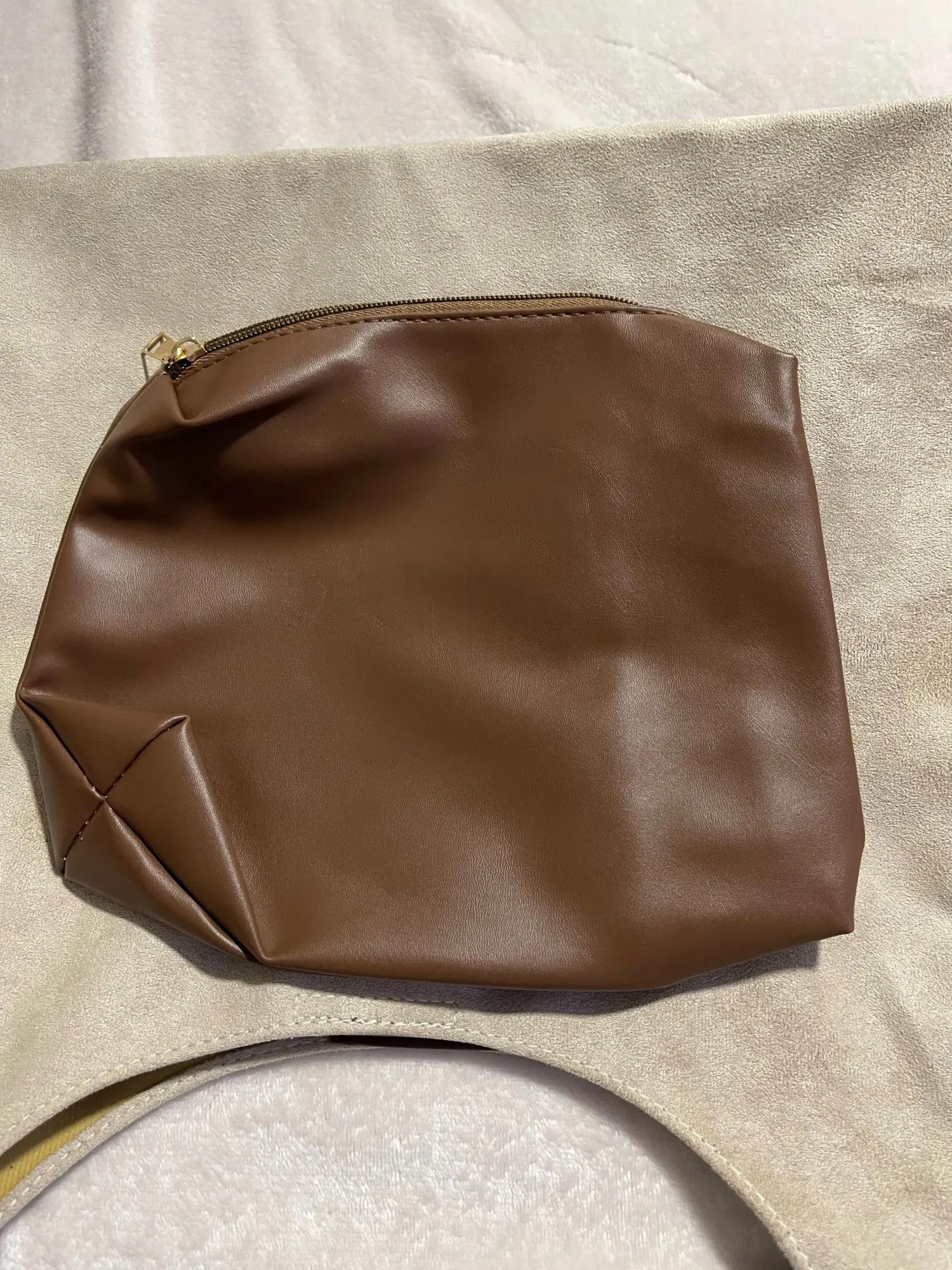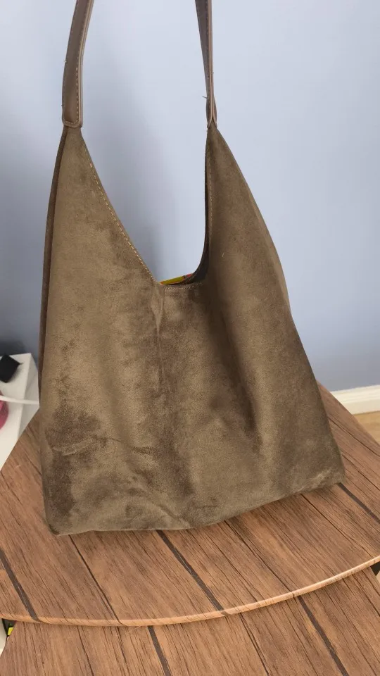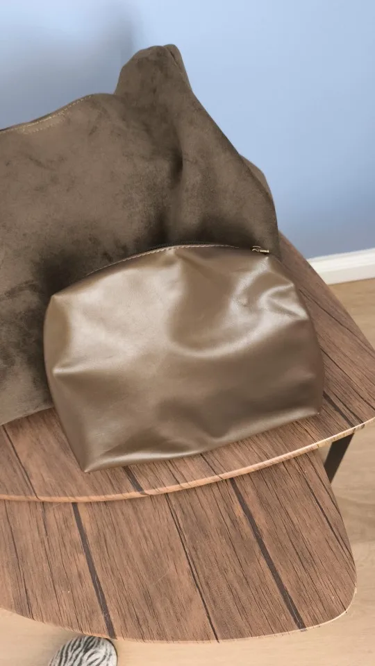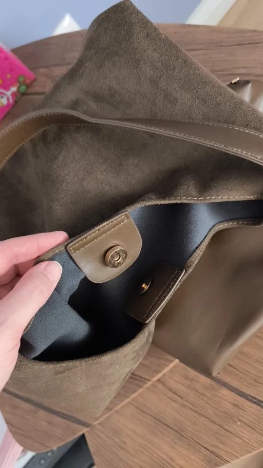 The bag is simply excellent, we sell similar ones for 40 euros, it's made of thick, good fabric, the bottom holds its shape, the color is nice, exactly what I wanted. There's a cosmetic bag inside, very convenient, all the small items and wallet are there, the bag closes with a magnet. There was a smell on the first day, but it quickly dissipated, not a big issue for me. The bag is spacious, but doesn't look bulky, I'm very satisfied.