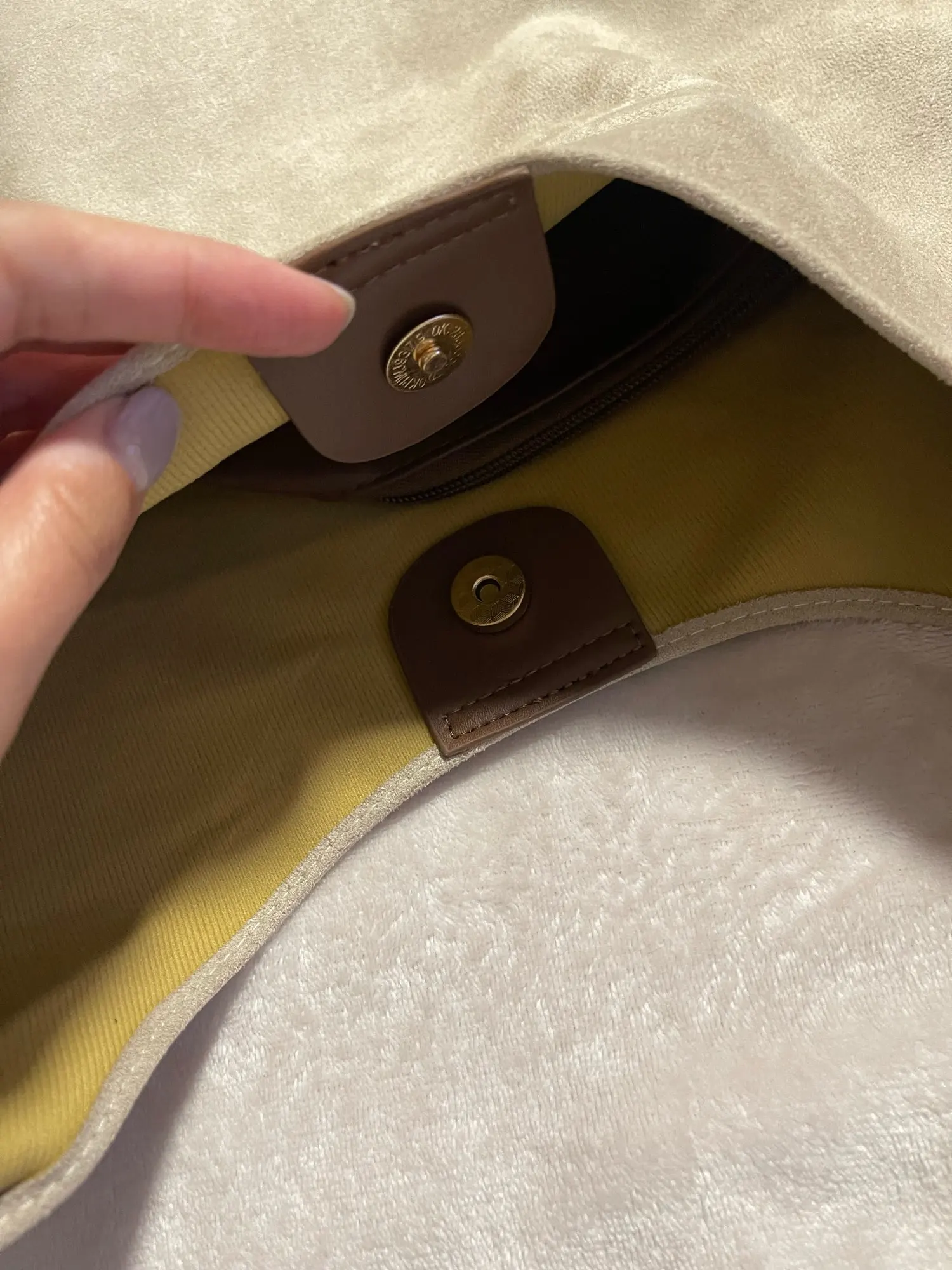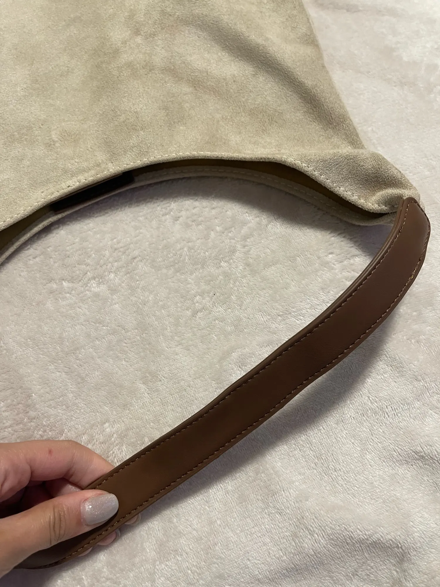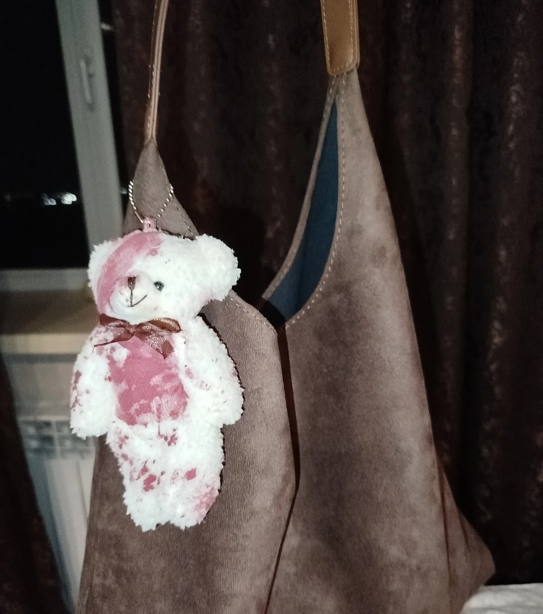 The bag is simply excellent, we sell similar ones for 40 euros, it's made of thick, good fabric, the bottom holds its shape, the color is nice, exactly what I wanted. There's a cosmetic bag inside, very convenient, all the small items and wallet are there, the bag closes with a magnet. There was a smell on the first day, but it quickly dissipated, not a big issue for me. The bag is spacious, but doesn't look bulky, I'm very satisfied.